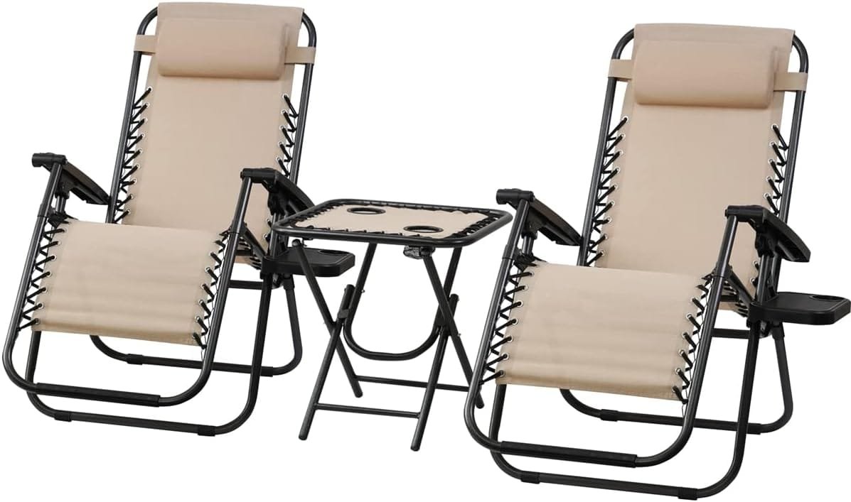 Este set de tumbonas incorpora un sistema de gravedad cero, diseñado para aliviar la presión en la columna vertebral y mejorar la circulación. Con respaldo ajustable, te permitirá encontrar la posición más cómoda para disfrutar de largos períodos de descanso al aire libre.